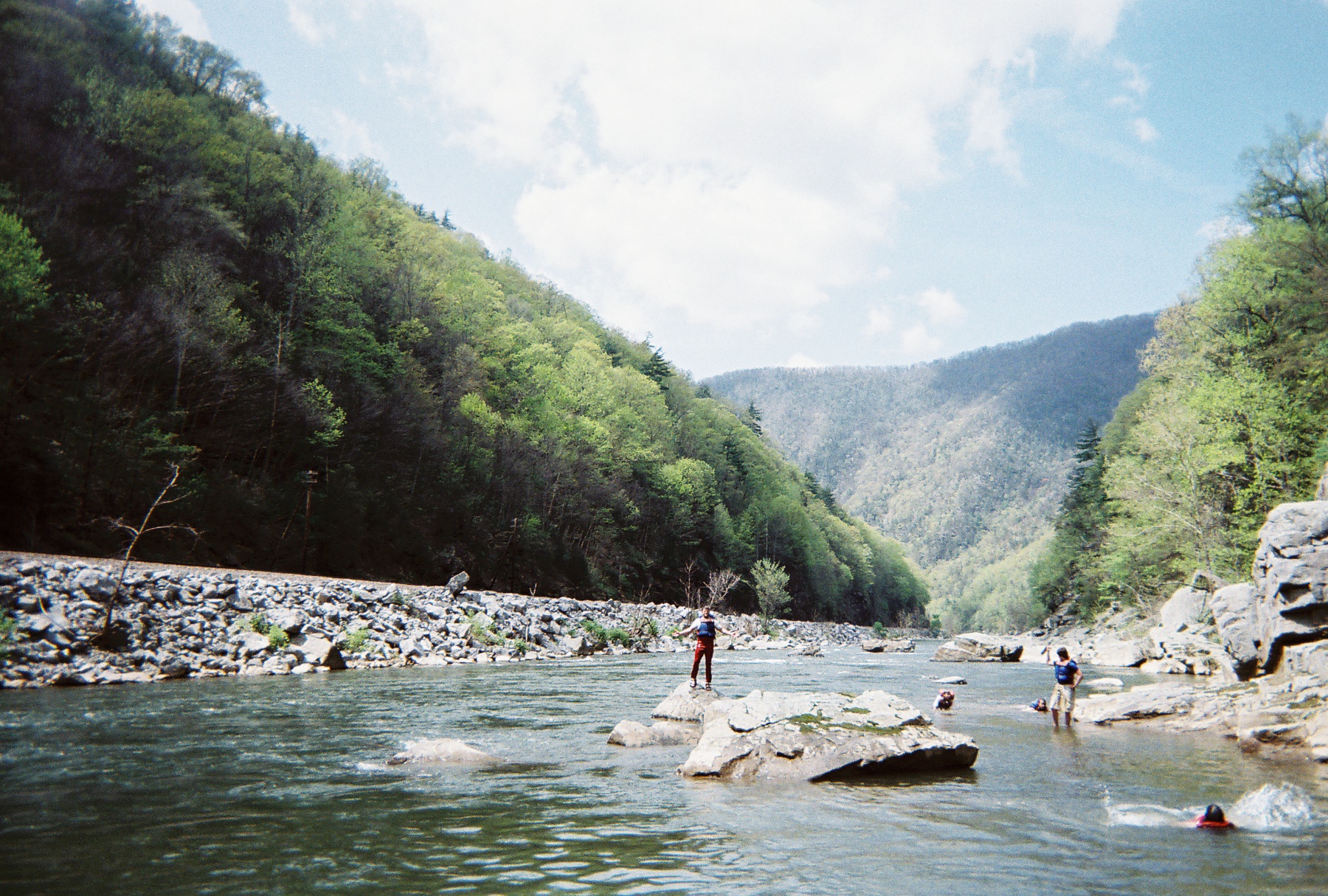 Playing on the river at lunch stop.