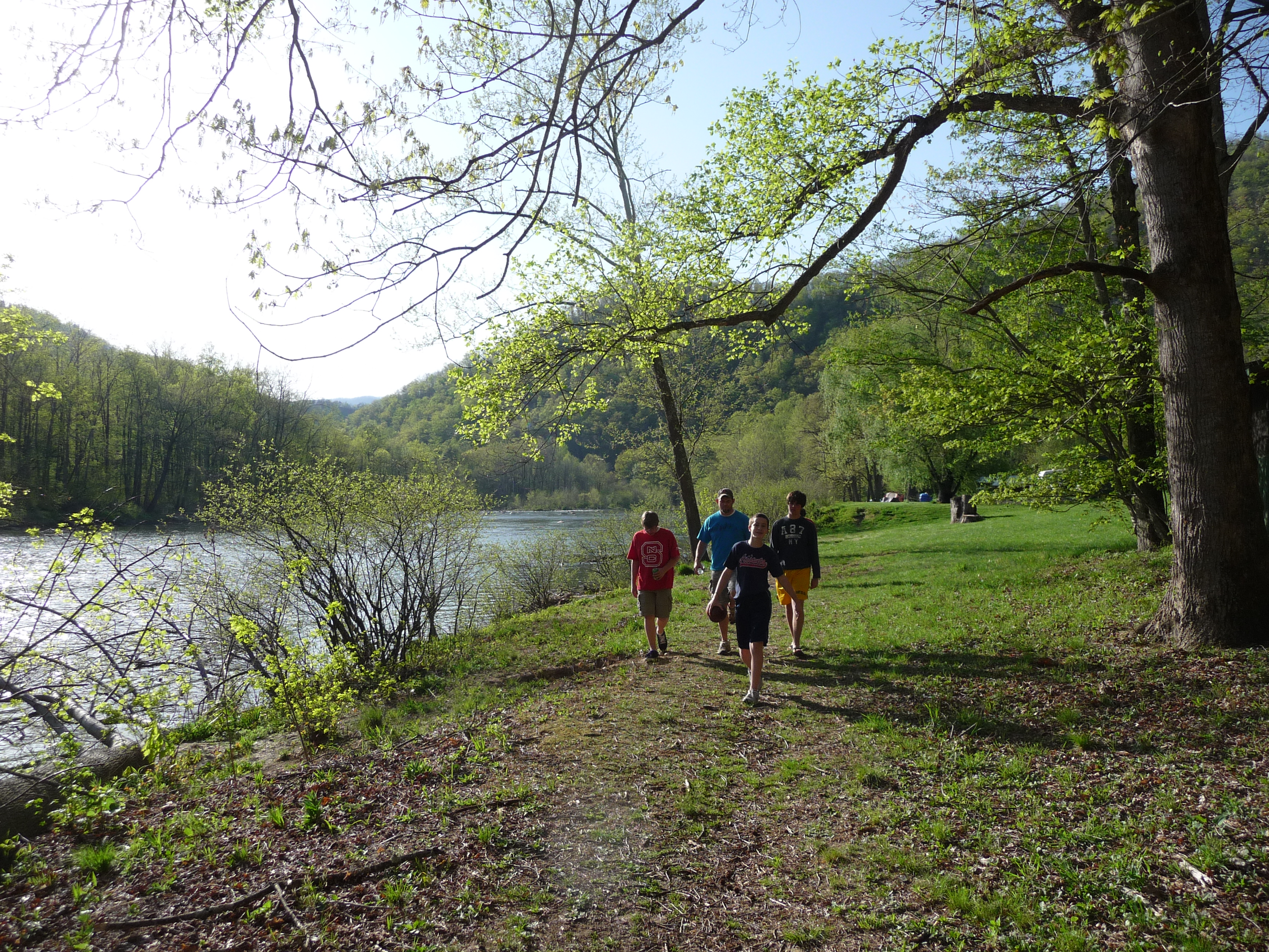 Boys going on a hike down the river path